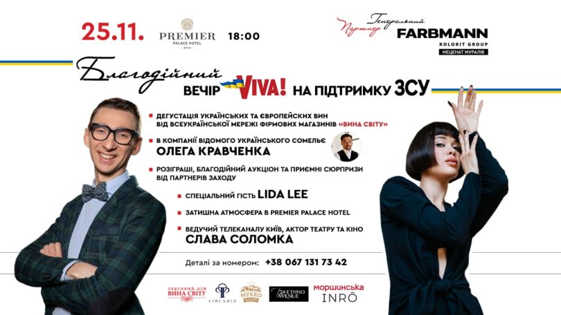 Як потрапити на подію: вхідний квиток — це ваш донат від 750 грн на потреби української армії. Для реєстрації на благодійний захід потрібно надіслати скрін вашої квитанції про донат в Telegram або Viber на номер: +38 067 131 73 42.