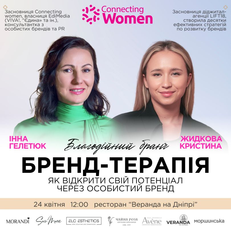 «Бренд-терапія: як відкрити свій потенціал через особистий бренд». 24 квітня | 12:00. Ресторан «Веранда на Дніпрі»