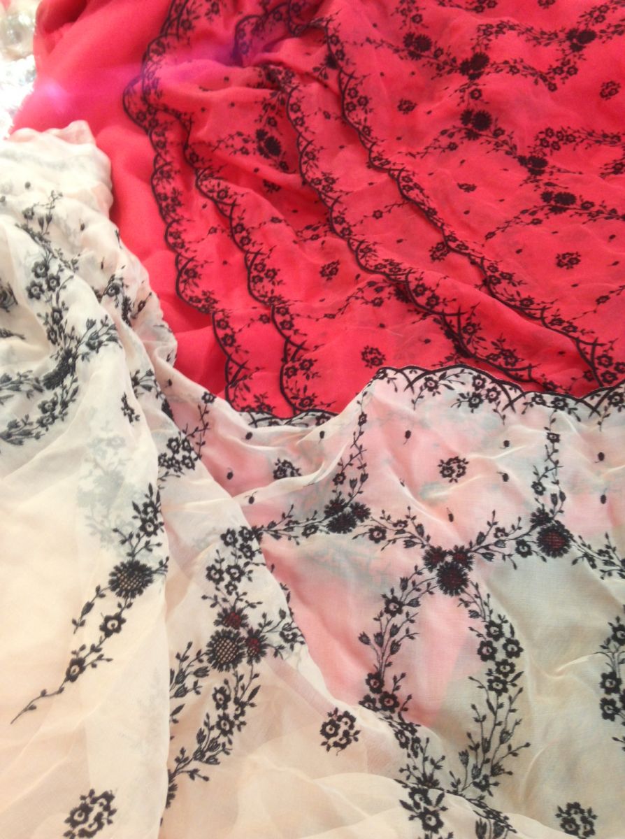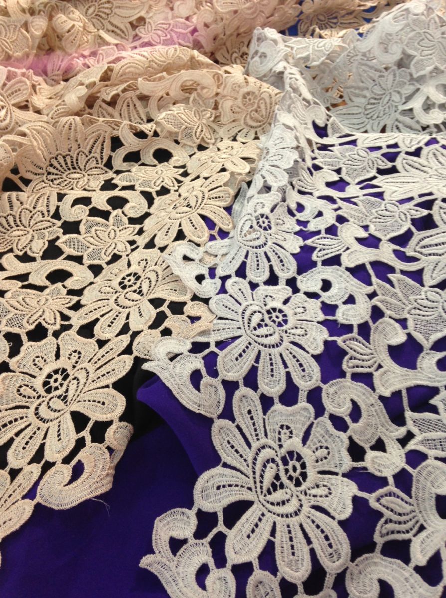 Кружева и материалы, используемые в коллекции, являются уникальными, так как рисунок, фактура, цвет ткани, нити, вышивки и кружева создавались по авторским эскизам Анастасии. Все материалы доставлены из Франции, а дизайнер вместе со своими мастерами превратили высококачественные французские ткани в волшебные платья, декорированные тончайшими кружевами.