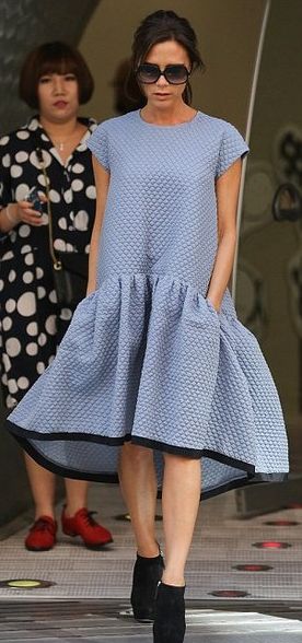 За этими повседневными делами папарацци и застали Вики в Нью-Йорке – на красотке было платье из ее весенне-летней коллекции для марки Victoria Beckham. Модный oversize-силуэт, женственные оборочки стеганная ткань невероятно эффектно смотрелись на хрупкой фигуре дизайнера, а ботильоны на высоком каблуке придавали образу женственности и элегантности.