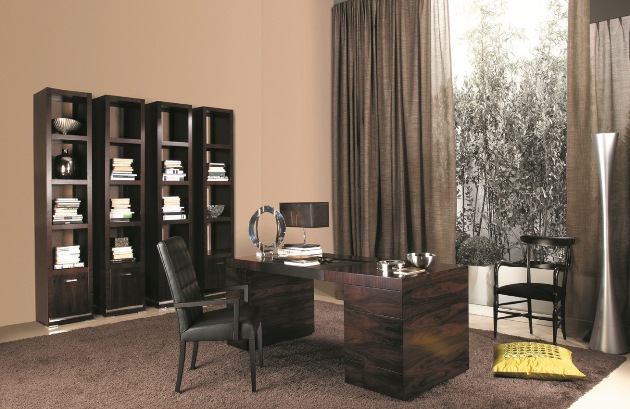 Солидный кабинет Uno со столом, отделанным дубовым шпоном и кожей, действительно позволит ощутить себя на первых ролях.