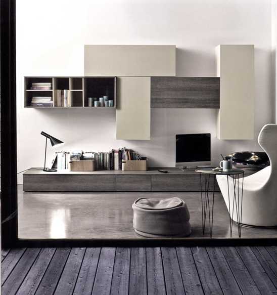 Минимализм сейчас в моде, и его принципы в полной мере воплощает мебель для гостиной из коллекции Hangar. Благодаря чередованию открытых и закрытых полок, образующих различные геометрические фигуры, эту стенку хочется рассматривать часами, как остроумную и стильную головоломку.