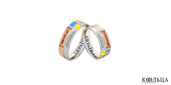 Пара колец «Украина», отвечающая велениям времени и рожденная историческими событиями 2013-2014 гг. Искусство во все времена тонко резонировало с событиями настоящего и чувственно проявляет будущее.