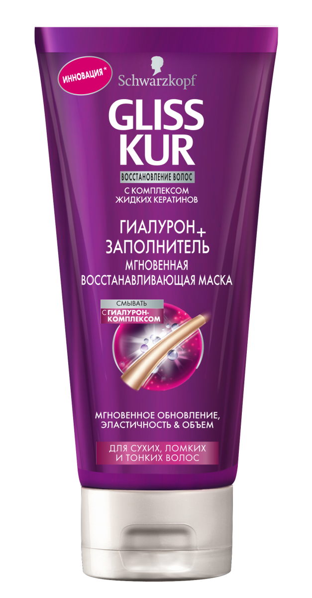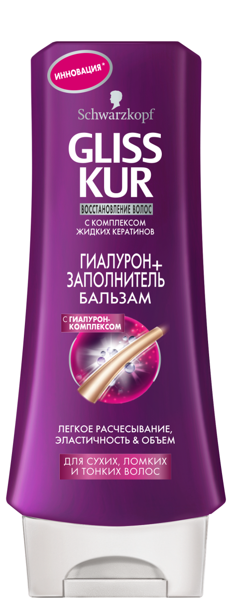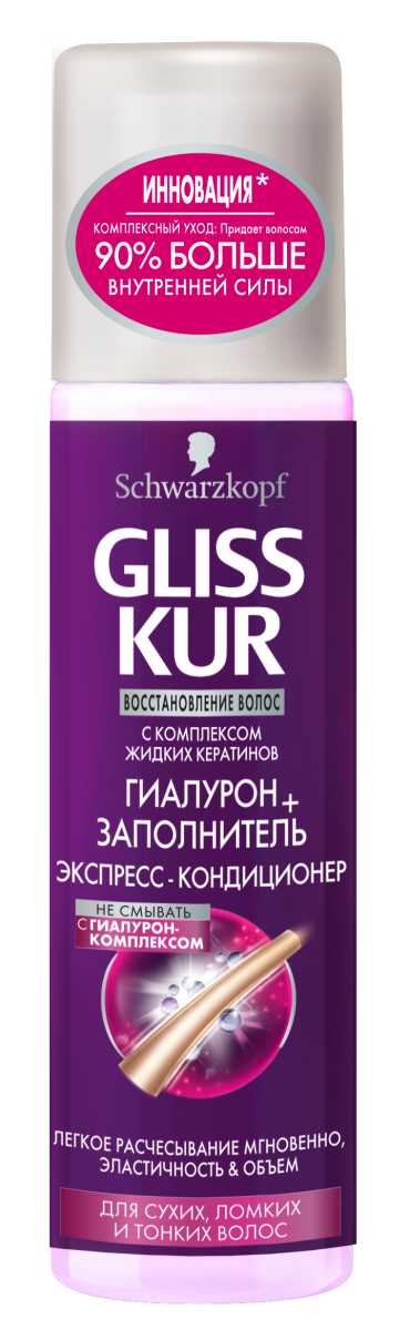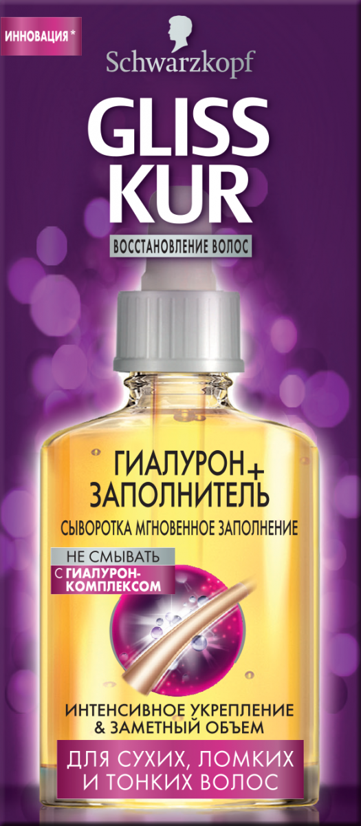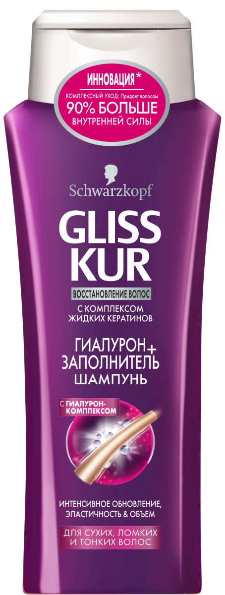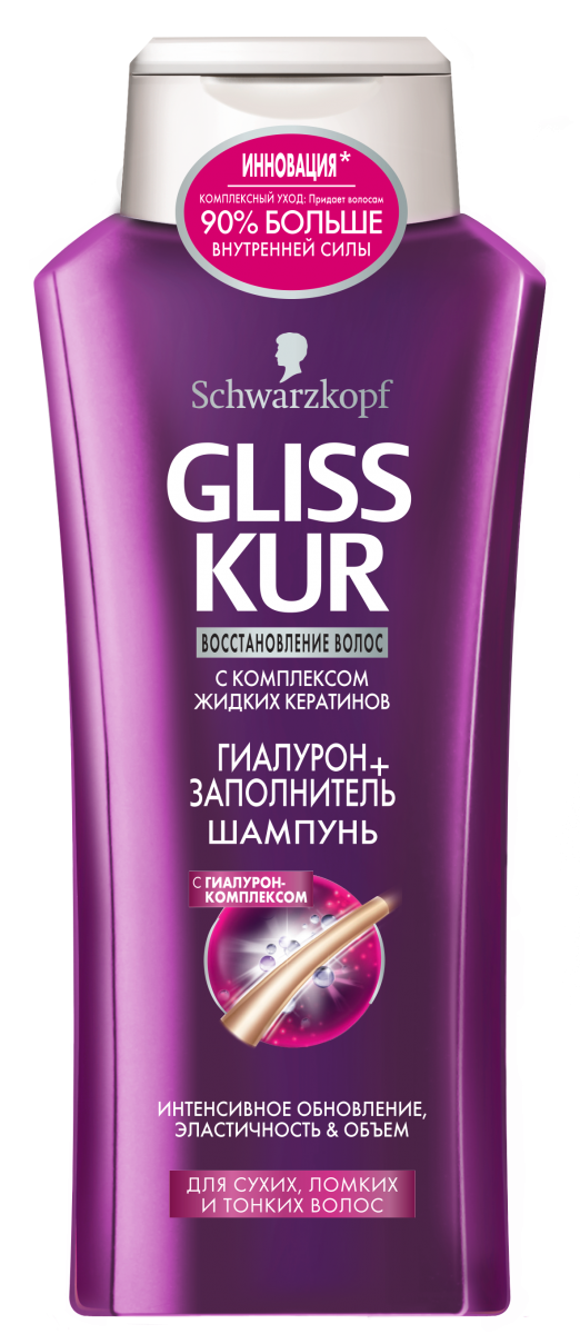 С возрастом не только нашей коже необходим более глубокий уход. Наши волосы также нуждаются в специально разработанной косметике, которая обеспечит высокоэффективное восстановление их прежней структуры. Первая восстанавливающая линейка от Gliss Kur с гиалуроновым комплексом - Gliss Kur     Гиалурон + Заполнитель – обеспечивает интенсивное обновление клеток волос, эластичность и заметный объем – до 90 % более крепкие волосы.1  Новий Gliss Kur     Гиалурон + Заполнитель  будет доступен в магазинах с августа 2014.