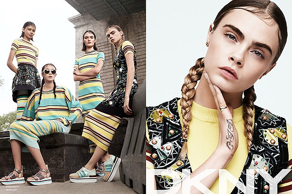 Известная британская модель Кара Делевинь снялась для рекламной кампании известного американского бренда DKNY. Яркие и задорные образы переносят нас в атмосферу беззаботных школьных дней или веселых молодежных вечеринок, а яркие цвета вызывают улыбку.