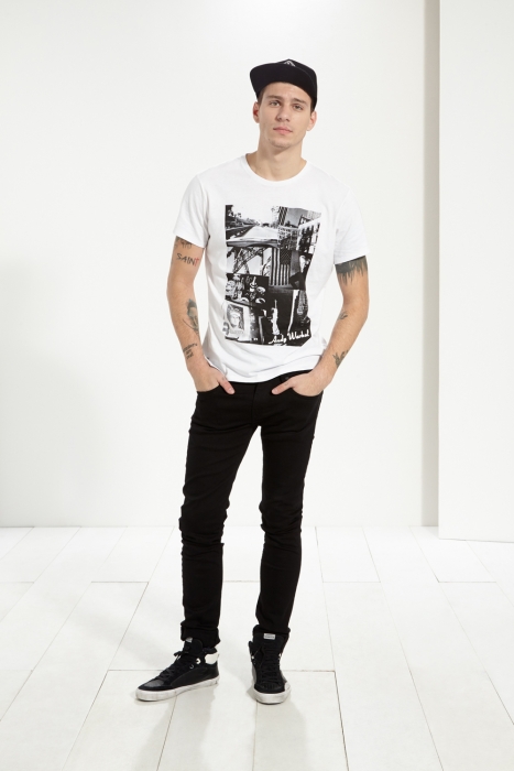 В основе этого молодежного премиум-ассортимента - современная джинсовая одежда с элементами спортивного стиля. Легкие и расслабленные образы для встреч с друзьями пропитаны эстетикой уличной моды и акцентированы стеганой верхней одеждой, а также футболками с элементами гранжа. Окрашивание темного денима распылителем и специальные пропитки преображают традиционные джинсы, приправив их акnутальными «фишками» в стиле стрит-арт.