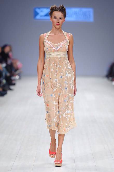 Материалы, которые Алена Ворожбит и Татьяна Земскова использовали при создании коллекции, также разные по характеру: от натурального шифона и деворе до полиэстера и кружев с люрексом.
