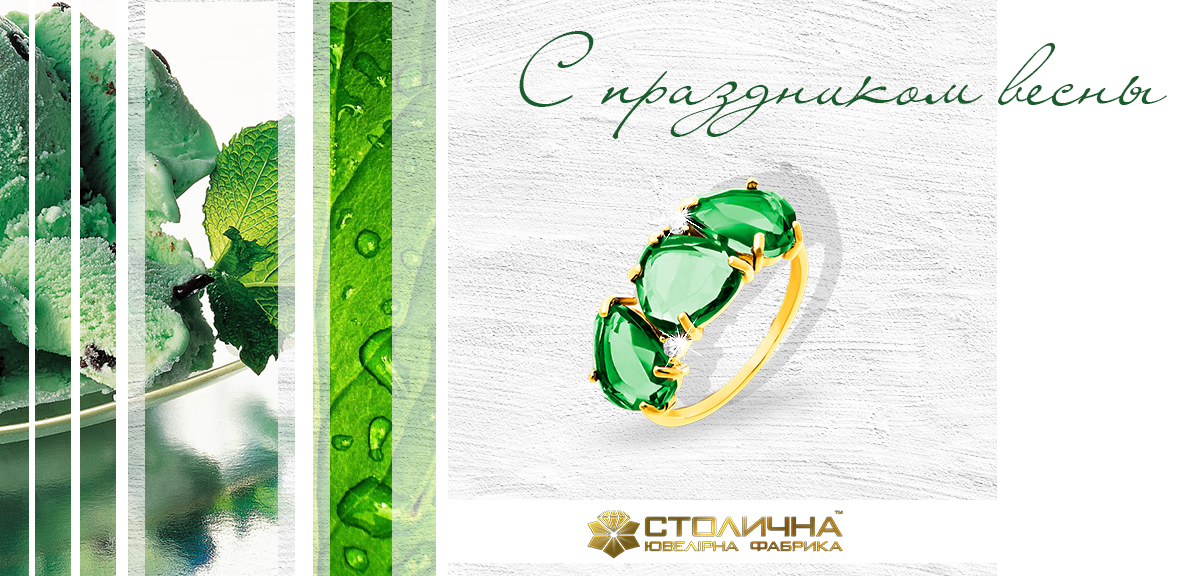 Весна улучшает настроение, и заставляет нас следить за изменениями в природе. На смену серому небу приходит голубой, все вокруг становится ярким и зеленым. Найти отражение этих изменений можно и в украшениях. По-весеннему будет выглядеть кольцо с зелеными камнями, которые оттеняют несколько сверкающих фианитов. Пусть такое необычное украшение станет Вашим личным символом весны и сохраняет чувство обновления в природе, вдохновляя на ощущение гармонии и обладательницу.
