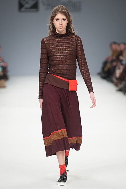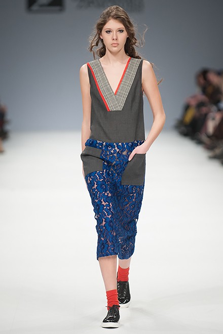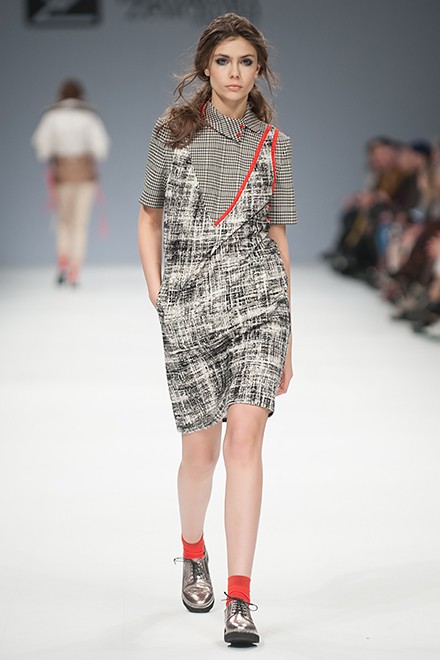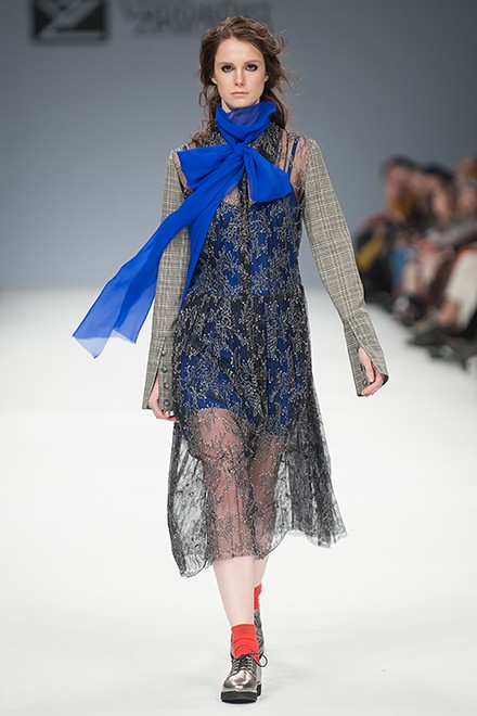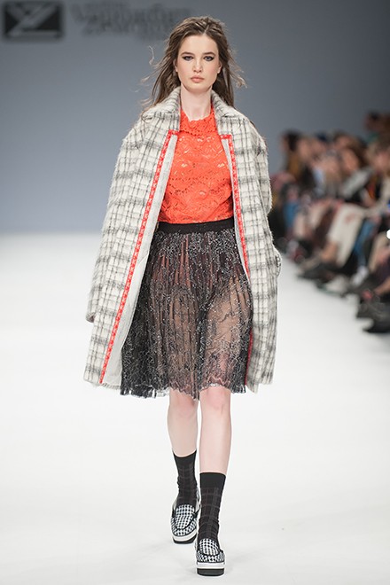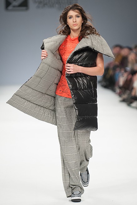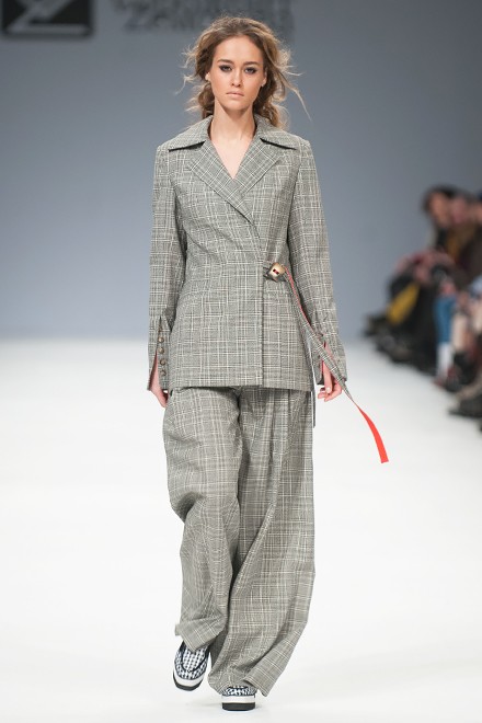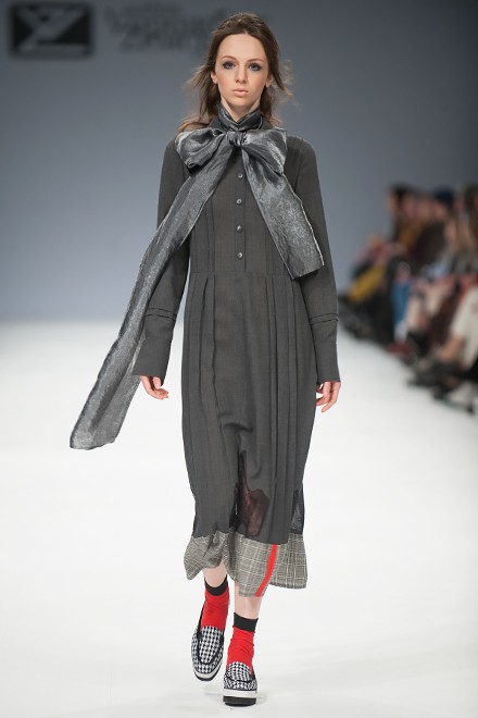 Любимые детали дизайнеров – молнии – воплощают диалог между практичностью и сексуальностью коллекции. На алой и сатиновой основе они врываются в серое царство, разрезая своими лучами пространство спокойствия, равновесия и стабильности. Давно забытые костяные пуговицы, словно изысканная приправа, усиливают вкус к новой классике от Vorozhbyt&Zemskova.