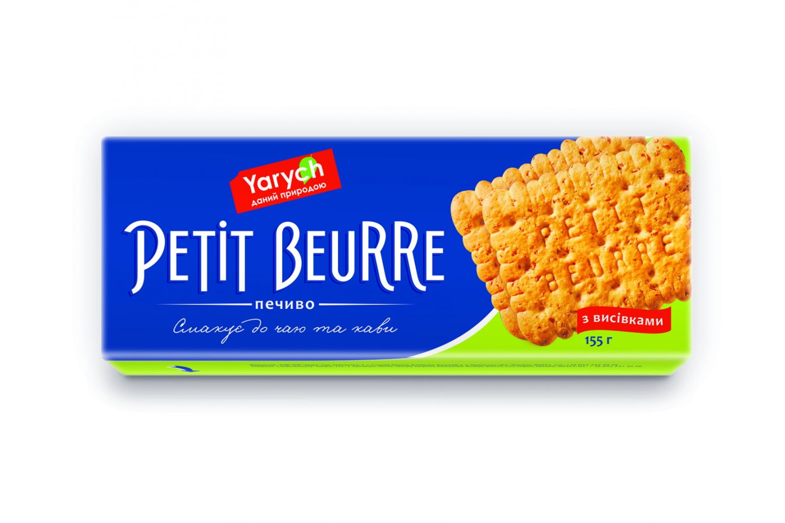 Petit Beurre Yarych — это совершенно новый для Украины вид затяжного печенья с нежной хрустящей текстурой. Тонкие печеньки так и тают во рту. Из трёх видов можно выбрать с какао, с отрубями или классический, с тонким сливочным вкусом. В Petit Beurre умеренное содержание жира и сахара. Он, как и любое другое затяжное печенье, к примеру, как всем известная «Мария», не относится к жирным, высококалорийным видам кондитерских изделий. А если учитывать минимальный вес одного печенья, то лакомиться Petit Beurre можно часто.