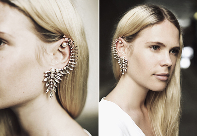 Яркий и вызывающий аксессуар. Носить кафф нужно только на одном ухе, на другое повесьте крошечную сережку-гвоздик.