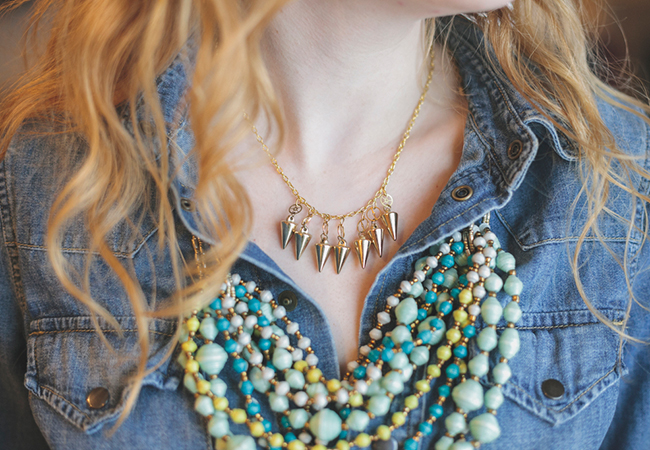 Ожерелья и чокеры продолжают быть модными с 2015. Эти украшения сочетают с любыми образами, даже с повседневным джинсовым стилем.