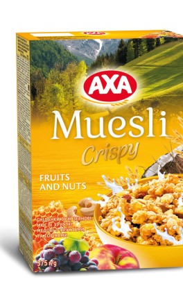 Наш секретный ингредиент - хрустящие мюсли AXA Crispy. Они делаются на основе злаковых хлопьев, с добавлением сушенных фруктов, орехов и меда. По сути, это овсянка, но обжаренная с добавлением меда, что делает её не только полезной, но и неимоверно вкусной. Такое сочетание - идеальная комбинация всех необходимых нам элементов: витаминов, минеральных веществ и пищевых волокон. Раскроем тебе небольшую тайну, это так же всеми любимая и популярная гранола, которая так часто подается в ресторанах. Итак, как на счет того, чтобы позавтракать легким фруктовым салатом с гранолой?