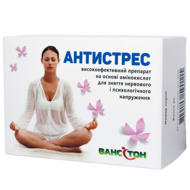 «Антистресс» – это комплекс, состоящий из триптофана и фруктозы (глюкозы) с добавлением витамина В6, который способствует их усвоению.
