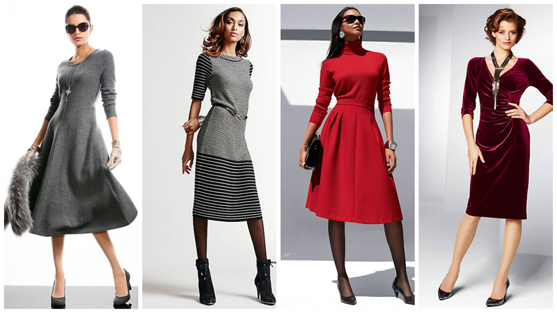 Некоторые тенденции прошлых сезонов остались актуальными и для сезона осень-зима 2016-2017. Например, по-прежнему в моде плиссированные платья с юбкой длинной до пола или до колена. Для будней будут актуальны уютные вязаные платья, а новинкой сезона стало фасон платье-водолазка. Оно обязательно должно быть удлиненное и обтягивающее фигуру.