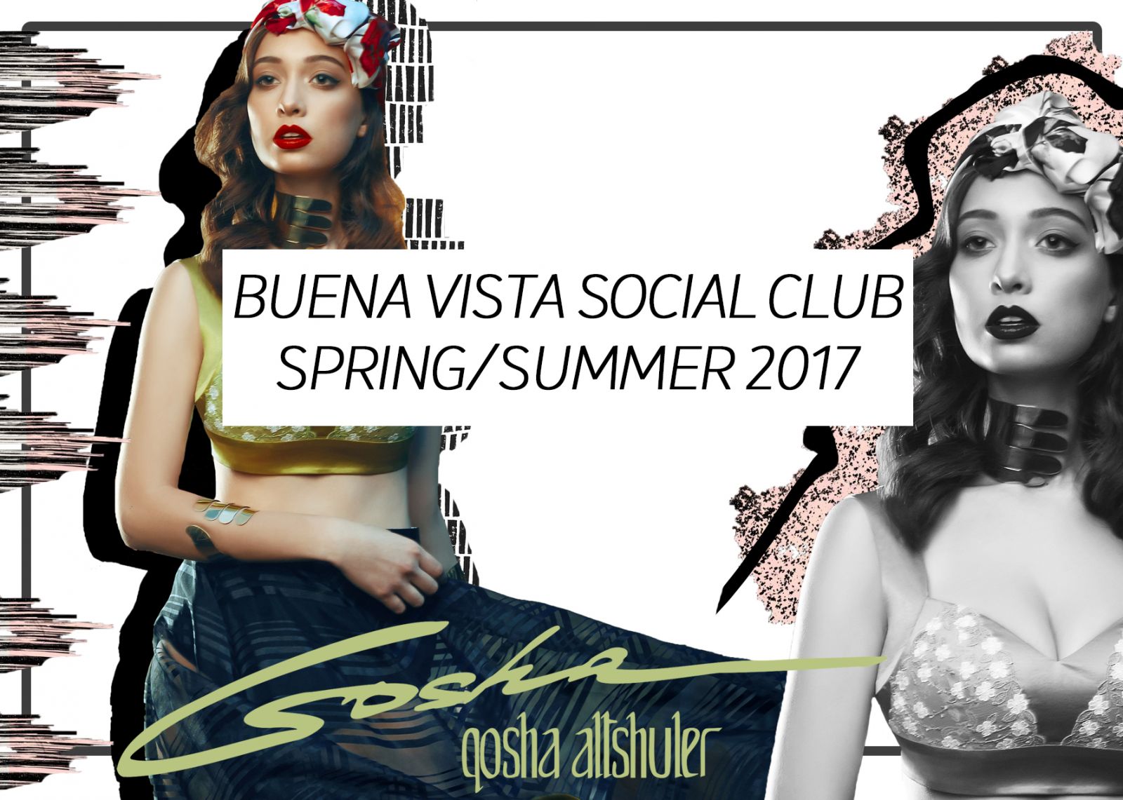 Лейтмотив Buena Vista Social Club – экстраординарность Кубы 40-х годов XX века. В коллекции представлены смелые, и в то же время, очень женственные модели, в которых кубинский темперамент соседствует с классическими силуэтами, свойственными бренду Gosha Altshuler. Дополняют луки оригинальные аксессуары от дизайнера Татьяны Чорной.