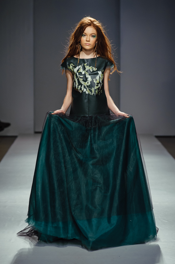В рамках нынешней Mercedes-Benz Fashion Days (1 – 5 февраля) создатели Couture de Fleur – издатель Инна Катющенко, выступившая в роли дизайнера коллекции, и художница Елена Онуфрив, представили коллекцию Nature in the City, лейтмотивом которой стало возвращение к истокам. По задумке авторов, осенне-зимние образы воспевают силу и красоту природы.