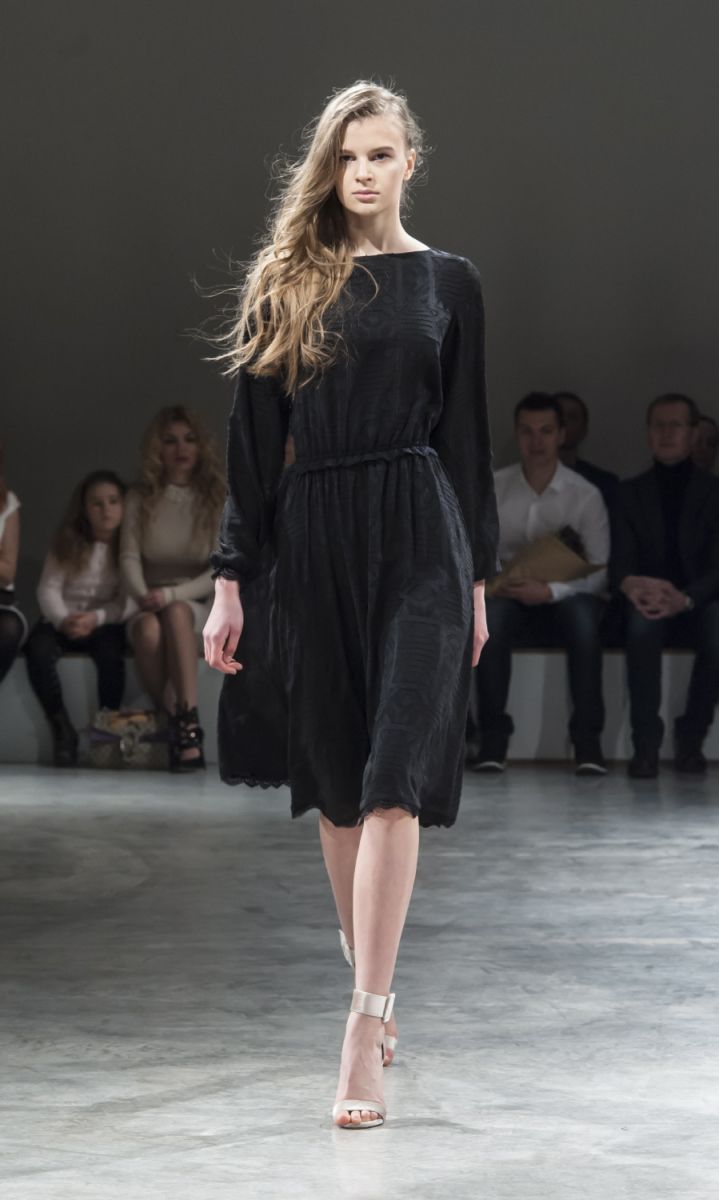 Показ Анастасии Ивановой в Киеве прошел в формате фэшн-бранча. Сама коллекция разделена на три блока. В первом – удивительным образом сплелись геометрия современного искусства, классический крой, лаконичная форма и сложная фактура жаккардовых тканей, где каждый наряд призван подарить женщине уверенность в себе, подчеркнув ее женственность и уникальность. Второй блок состоит из легких силуэтов fit-and-flare, помогают создать которые воздушный фактурный шифон, изящная тесьма и перья. Закрывают коллекцию изысканные платья в пол с воздушными рукавами и элегантно открытым декольте.