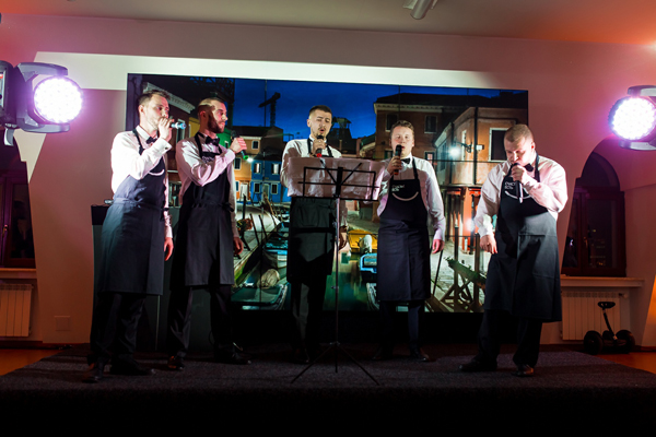 Кейтеринг «Счастье Есть» полностью оправдывал свое название, угощая гостей вкуснейшими закусками, подаваемыми радушными мужчинами-официантами.