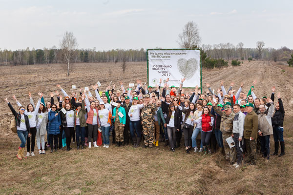 6 апреля 2017-го года активное участие в посадке молодого сосново-березового леса, площадь которого составит 15 гектаров, приняли сотрудники компании Yves Rocher Украина, представители Всеукраинской общественной организации «Ассоциация агроэкологов Украины», журналисты, блогеры, партнеры, волонтеры и лесники – не словом, а делом приобщились к проекту «Озеленим Планету Вместе».