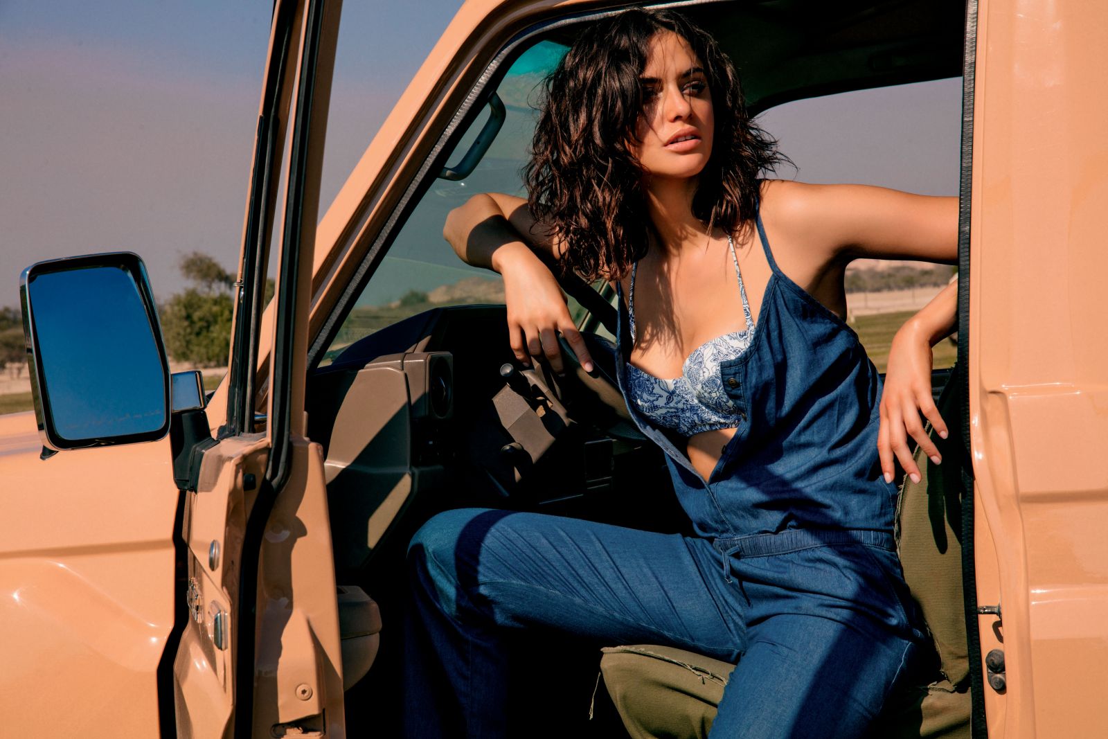 Морская полоска и пальмовая ветвь – знаковые паттерны лета запечатлены в линии Sail. Два тренда сезона появляются поочередно на бикини с треугольными чашками и балконет, халтере, классических брифах и трусиках с высокой посадкой. Одновременно принт navy и очертания джунглей отразились на танкини: надеть модель можно лицевой стороной или наизнанку, чтобы сменить образ, не меняя купальник. Тенденции подиума также запечатлели топы, туники, юбки, леггинсы и сандалии – одежда и обувь, вошедшие в линию, превратят поход на пляж в дефиле. Культовый материал озорного сезона послужил вдохновением для создания линии Denim. Купальники выполнены в оттенках денима, а комбинезоны и сарафаны и вовсе сшиты из легендарной джинсовой ткани. Модели дарят свободу в движении, а утонченные дизайны – в выборе досуга.