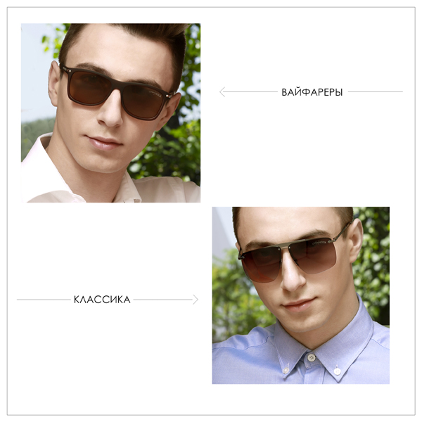 Несмотря на то, что вайфареры считаются моделью унисекс, сегодня они более популярны среди мужчин. Их можно носить, как с классическим, так и с повседневным образом. Если говорить о классике, то тут сочетание очков и головных уборов может оказаться лишним: консервативному образу чужда фривольность. А вот в стиле casual эти очки прекрасно комбинируются с теми же кепками и шляпами, повышая его до уровня smart.