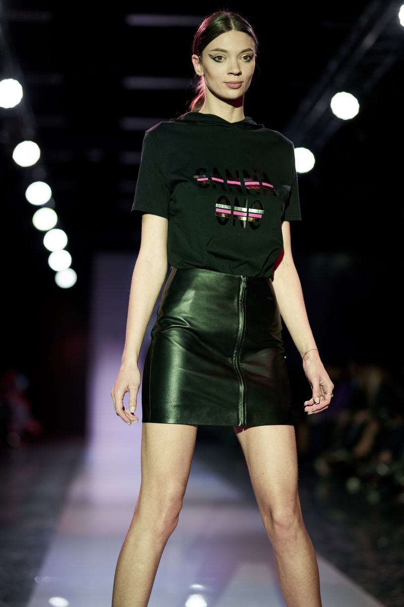 Присущие марке эффектность и женственность по-новому раскрылись в спортивной тематике коллекции #Ritm. Основным материалом, с которым работает Sanna One, традиционно осталась кожа, которая в новом сезоне представлена в ярких оттенках, с напылением «металлик». Лампасы и накладные карманы контрастно украшают платья с женственными силуэтами. Отделка пайетками напоминает о том, что у девушки в стиле Sanna One всегда есть повод для праздника.
