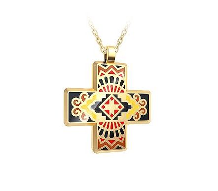 Образ Украины можно носить и возле сердца. Очень выразительные крестики из коллекции «Хранители» украшают традиционные стилизованные в национальном стиле узоры. Желтое золото, дополненное контрастными и очень яркими узорами в национальном стиле, привлекает внимание тонкой работой эмальеров.