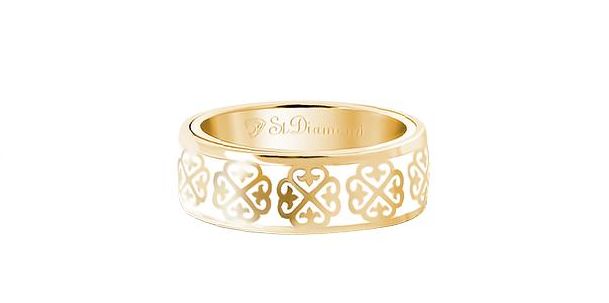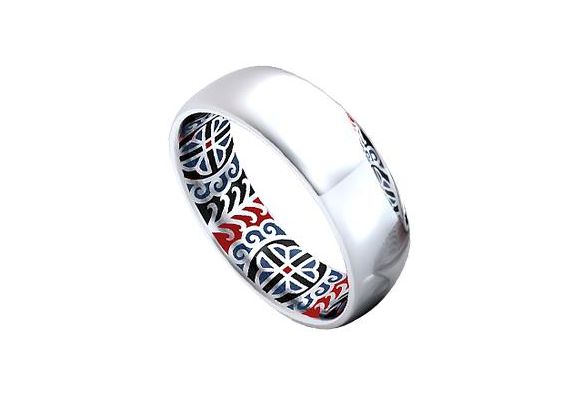 Пожалуй, самая оригинальная идея ювелиров бренда STDIАMOND – расположить цветную эмаль внутри кольца. Если с внешней стороны обручальное кольцо из белого золота «Хранители Надежды» не кажется необычным, то его «изнанка» готова поразить стилизованными и символичными узорами.