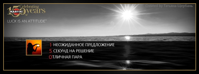 По случаю своего 150-летия MARTINI® представляет 1 уникальное приложение, в котором абсолютно каждый, потратив всего 5 минут на креатив и 0 на сомнения, может решить задачу. Итак, принимайте вызов, вооружайтесь правильным настроем – и создавайте свою удачу! Первая серия мероприятий, запланированных в рамках программы, начинается с использования специального приложения «150 формул», размещенного на официальной странице MARTINI® в Facebook. Тех, кто сможет создать свои собственные оригинальные формулы, отображающие философию «УДАЧИ НЕТ. ЕСТЬ ТОТ, КТО ЕЕ СОЗДАЕТ», ожидают великолепные, потрясающие призы. Поэтому рискуйте – и выигрывайте пригласительный на двоих на 5-звездочный отдых с VIP-сервисом на озере Комо (Италия), стильный наряд от известного дизайнера или набор MARTINI® для веселого времяпрепровождения. За событиями можно следить на www.facebook.com/MARTINI.