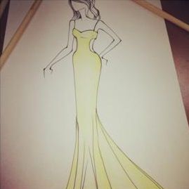 Эскиз готов! На каждое из трех платьев необходимо более 25 метров ткани, ведь наряды должны иметь пышную форму по подолу, для этого мы кроим по косой клинья платьев и шлейф.