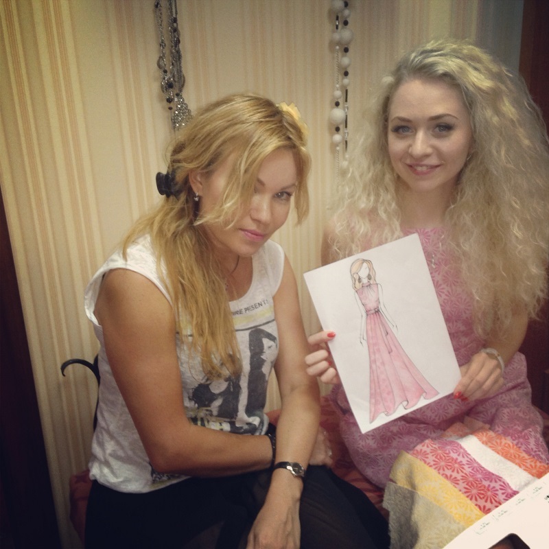 Эскиз платья я показала Lilu в своем шоу-руме Nai Lu-na by Anastasiya Ivanova, за чашечкой ароматного чая. Певица внимательно выслушала мой подробный рассказ о том, каким будет новое платье, добавила еще несколько своих пожеланий – и мы в отличном настроении отправились выбирать ткань.