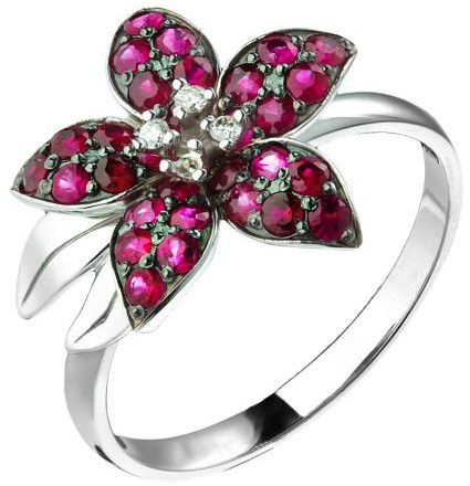 Это кольцо достойно стать лучшим подарком в Женский день как минимум по двум причинам. Во-первых, дизайн: цветочная тематика весной актуальна как никогда. Во-вторых, на украшении сияют очаровательные рубины – камни страсти и любви!