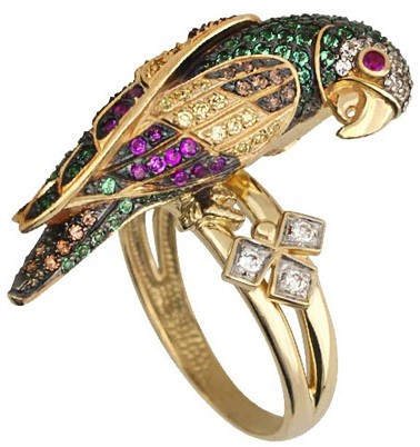 Имена мировых модных брендов – музыка для слуха леди, которая следит за творчеством именитых дизайнеров и трендами. Кольцо с попугаем соответствует по стилю анималистичной коллекции Cartier. Идеальный подарок для модной девушки.