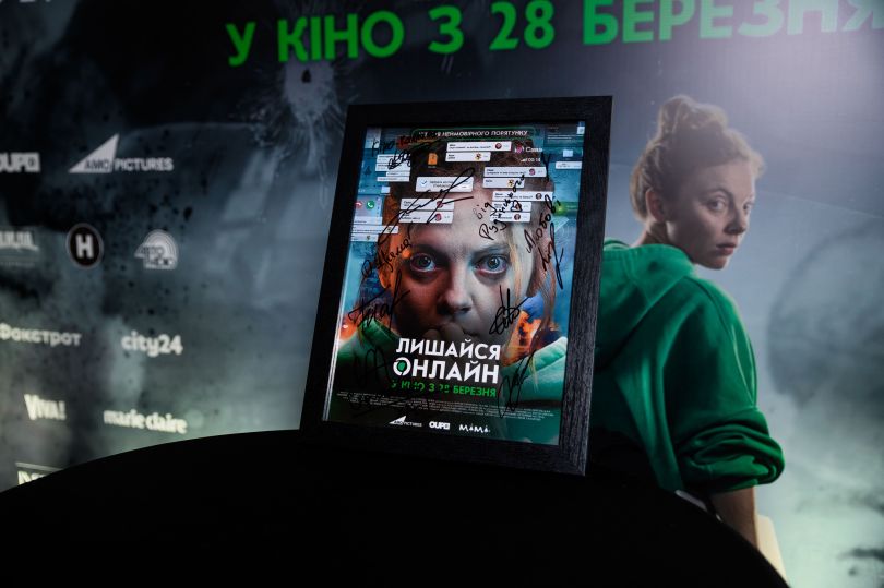 26 березня у столичному кінотеатрі “Оскар” в ТРЦ “Гулівер” відбувся великий допремʼєрний показ художнього фільму “Лишайся онлайн”, знятого під час повномасштабного вторгнення в унікальному для українського глядача форматі скрінлайф. Захід відвідало близько 500 гостей: телеведучі, інфлюенсери, військові, волонтери, громадські діячі, медіаменеджери, зокрема Олена Кравець, Олександр Терен, Соломія Вітвіцька, Сергій Стрельников, Римма Зюбіна, Олександр Ткаченко, Ірина Кудашова, Олександр Волошин, Олена Світлицька, Олександр Яцентюк, Роланд Мішко, Юля Юріна, Анна Добриднєва, Олег Скрипка, Валерія Ходос, Богдан Рубан, Анна Тульєва, Георгій Зантарая та багато інших.
