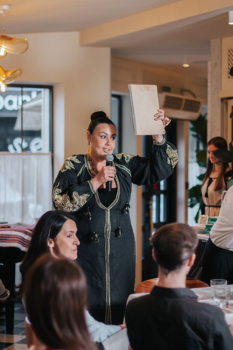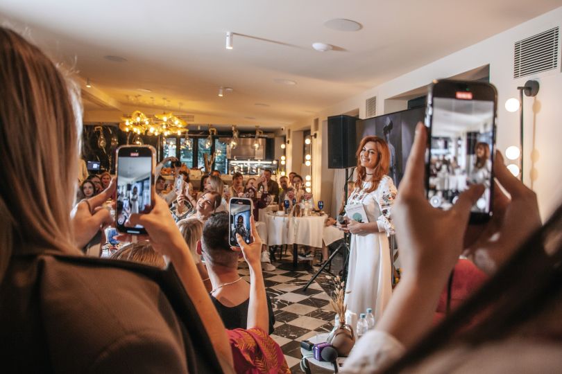 Запрошених пригощали вишуканими французькими смаколиками та ігристим вином Latinium, водний баланс поповнювали водою з артезіанської свердловини Avalon. Напередодні презентації гості отримали подарункові бокси з подарунками від авторки книги та партнерів заходу, де, зокрема, була прикраса «Журавлі» з колекції «Любов по-українськи» у колаборації Олени Шершньової та українського ювелірного бренду Agres.