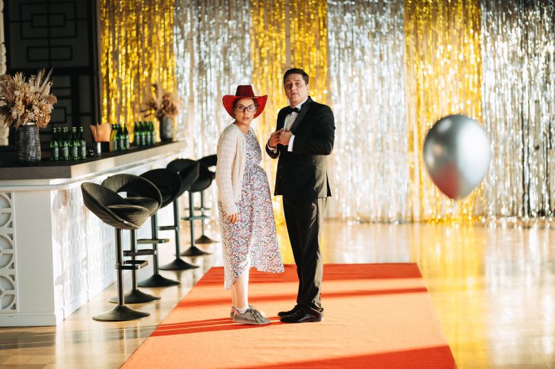 Не виключено, що для глядача це впізнаваний образ. Ми розуміли, що для глядача це впізнаваний культурний код, який одразу зчитується й працює на характер персонажа Тараса Цимбалюка.Тому образ будувався з легким іронічним підтекстом: доглянутий, стильний, упевнений у собі чоловік, який звик бути в центрі уваги. Костюми, силуети й деталі підкреслювали цей «телевізійний» образ холостяка, але без прямого копіювання — радше як гра з асоціаціями. Це рішення допомогло швидко задати настрій сцені й додати персонажу додаткового шарму та гумору, який глядач легко впізнає.