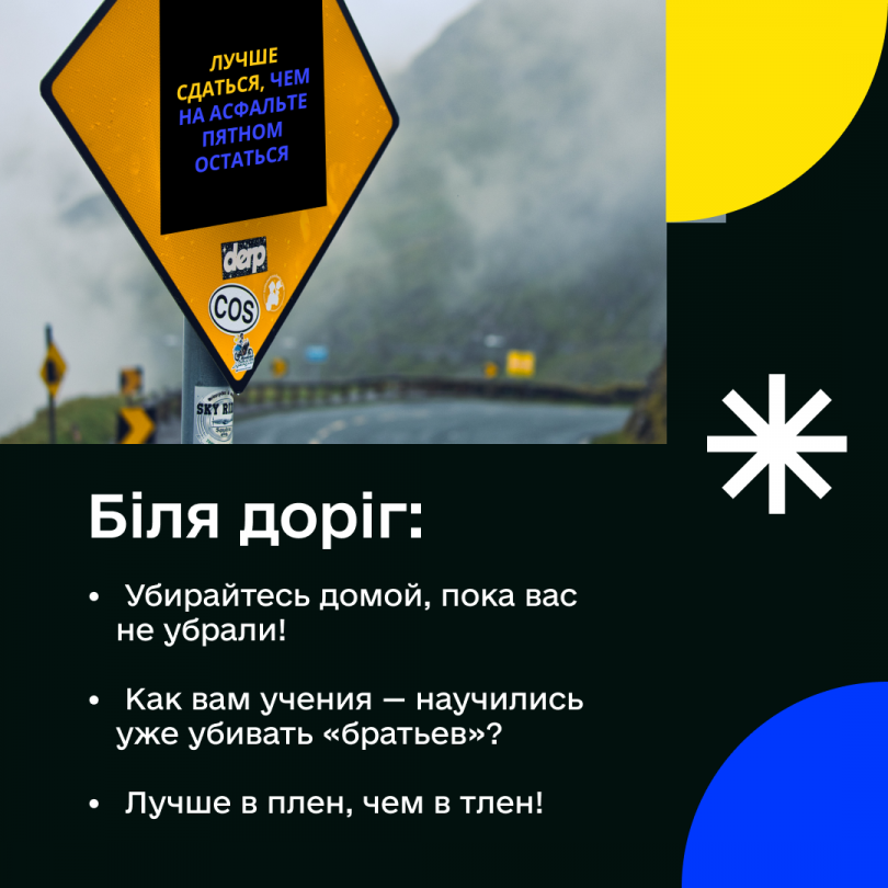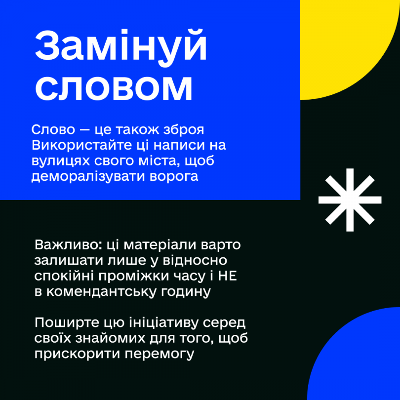 Завдяки слову ви може суттєво деморалізувати окупантів. Адже російським військовим «промили мізки», що тут чекають на «визволення». Давайте покажемо їм, що це не так. Російські війська мають відчути та побачити, що тут вони — непрошені чужинці.