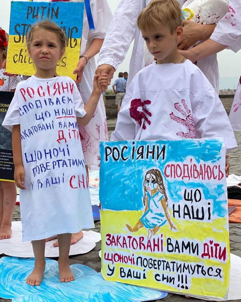 Російськими загарбниками вбито понад 260 українських дітей, а також 463 зазнали поранень. Ще 3 мільйони маленьких українців переміщені в Україні, 2,2 мільйони є біженцями, а 238 329 дітей насильно депортовані до росії.