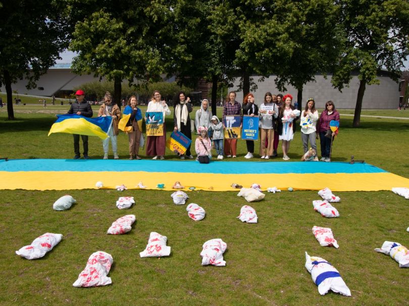 Марш Матерів в Амстердамі відбувся на Музейній площі біля меморіалу Women of Ravensbrück, що вшановує памʼять понад 90000 жінок та дітей, більшість з яких за 6 років загинуло від голоду, медичних експериментів та у газових камерах. Учасницями Маршу Матерів також була зроблена жива інсталяція у пам’ять про загиблих у війні з росією українських дітей. Метою акції стало вшанування пам’яті, привернення уваги європейців до нашого спільного горя. Також були оформлені стенди з інформацією щодо постраждалих дітей в Україні, короткими уривками з воєнних дитячих щоденників.