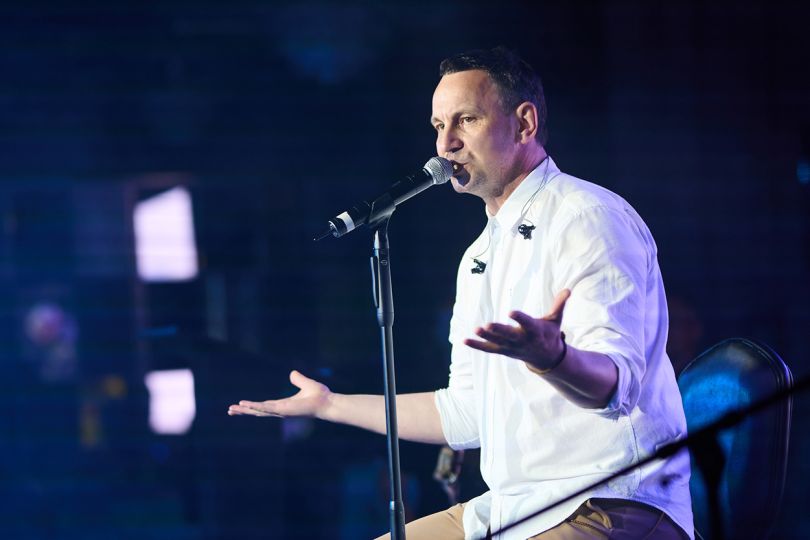 Під час заходу на сцену вийшов Валерій Харчишин та поділився своєю історією втраченого будинку.