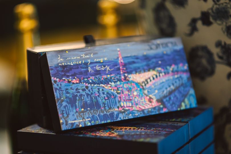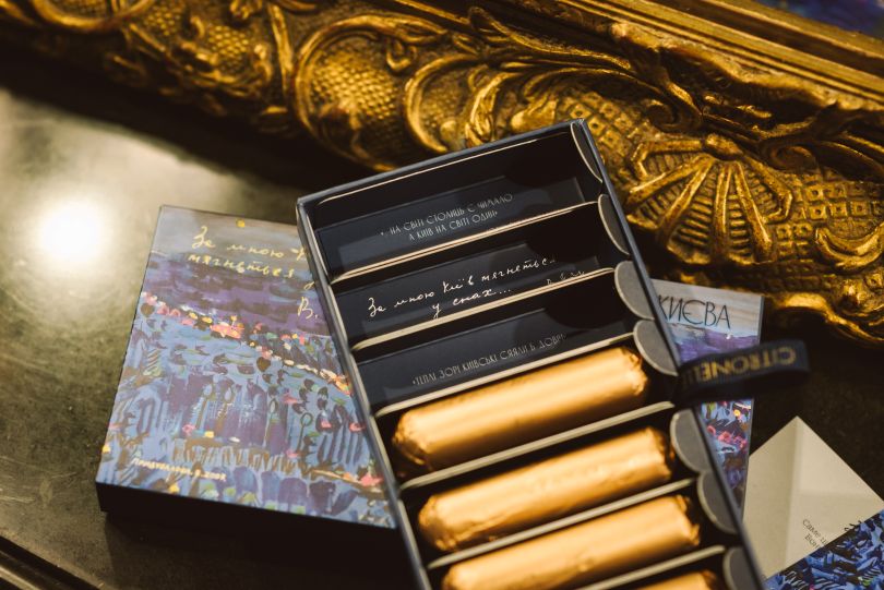 А сьогодні презентовано продовження цієї історії — колекцію шоколадних цукерок «Зорі Києва». Візуальним символом цукерок стала картина відомої української художниці Олени Придувалової «Поділ» — одна з тих, що були представлені в Citronelle у межах проєкту «Перемога Гідності». Вона прикрашає і частину пляшок лімітованої мистецької колекції шампанського. Кожна цукерка знаходиться в ложементі, на якому нанесено вислови славнозвісних українських митців про Київ.