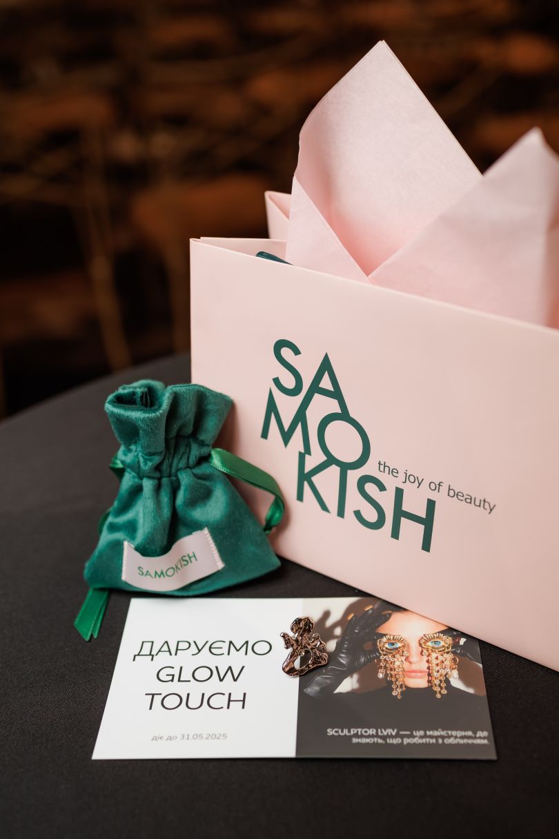 Головним подарунком артвечора для всіх гостей стала особлива брошка SAMOKISH як символ сміливості розкривати свою індивідуальність через стиль та мистецтво, натхненна творчістю Ельзи Скіапареллі.