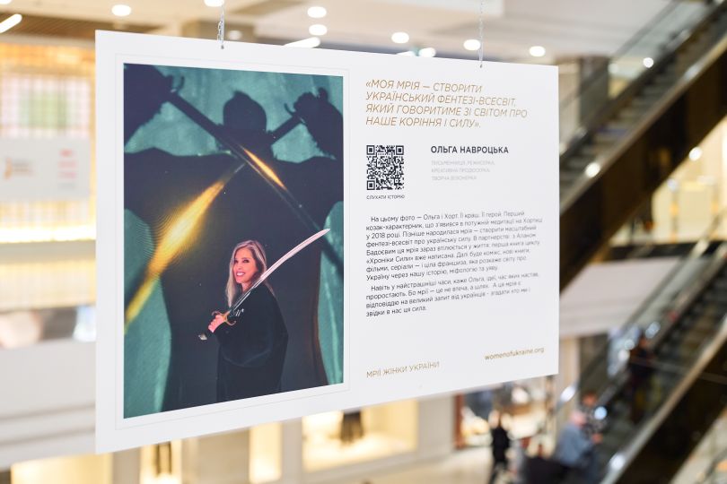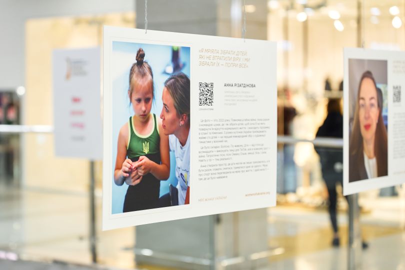 Це не просто портрети, а живі історії, зафіксовані у справжніх фотографіях, зроблених самими героїнями або людьми поруч із ними. Світлини фіксують моменти змін, болю, сили, радості — коли народжується пісня, відкривається школа, усміхається врятована дитина, або ухвалюється рішення, що впливає на долю країни. Поруч із кожною — історія, яку можна прочитати та почути, скориставшись QR-кодом на стенді.