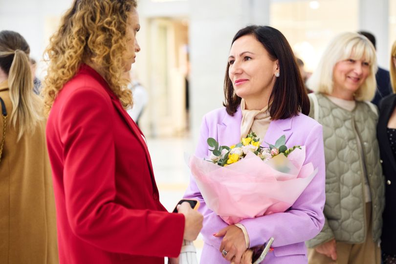 Засновниця премії «Жінка України» Інна Гелетюк і Ганна Різатдінова на відкритті мультимедійної фотовиставки «Мрії Жінки України»