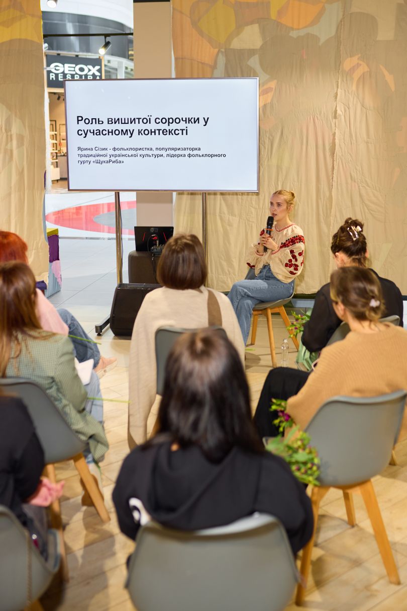Центральною подією стала лекція фольклористки та дослідниці українських традицій Ярини Сізик, яка також є лідеркою гурту «ЩукаРиба». У своїй доповіді на тему «Роль вишитої сорочки у сучасному контексті» вона окреслила еволюцію вишиванки — від елементу щоденного вжитку в традиційній культурі до актуального модного символу з глибоким змістом. Ярина також наголосила на важливості носити вишиванку не лише на свята, а й у повсякденному житті як засіб збереження національного коду та самоідентифікації.
