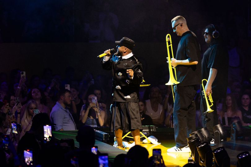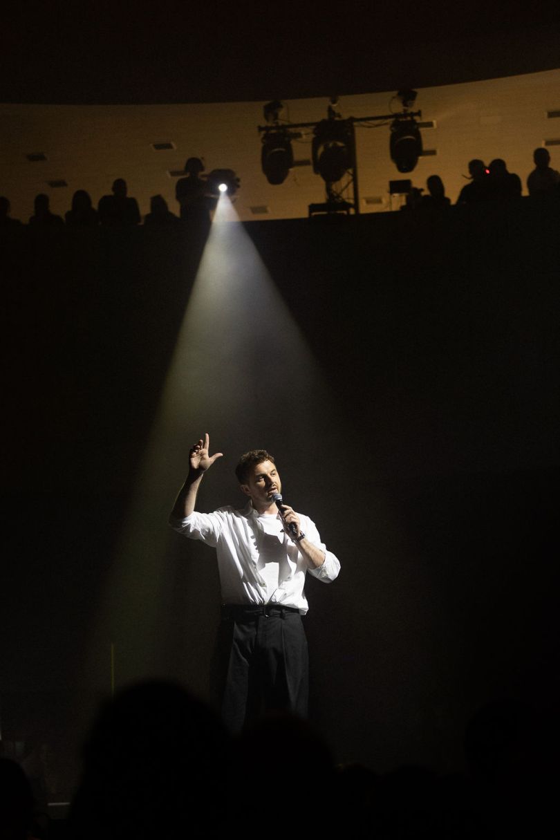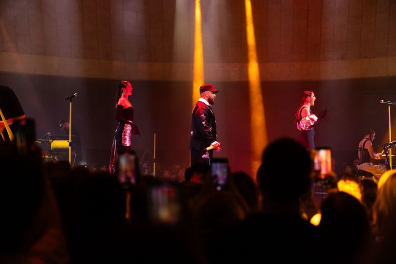 Концерт поєднав музику, перформанс і благодійність. На сцені – 360-градусний огляд, бенд, лазери, перформери й актори на кількох рівнях будівлі. MONATIK традиційно був не лише вокалістом, а й хореографічною частиною шоу: разом із командою музикантів та танцівників він виконав номери з нового альбому.
