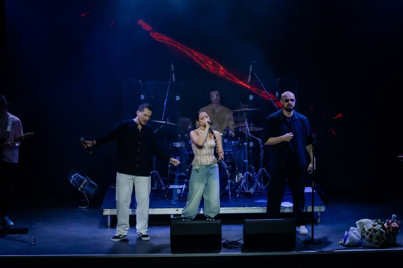 На сцені — Оля Воробйова та Сергій Кузнєцов у супроводі живого бенду. Гурт виконав більше 20 пісень, серед яких уже улюблені хіти та нові треки. Зал особливо тепло прийняв "Симфонію", "Кине трубку" та прем'єрну пісню "Синоніми", що вже встигла стати емоційною кульмінацією вечора. Публіка тричі викликала гурт на біс.
