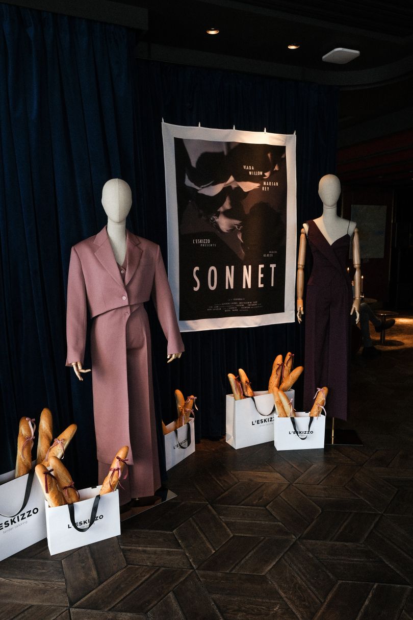 Колекція стала справжнім відображенням жіночності, що не потребує пояснень: вона відчувається у кожному русі та дотиці тканини. Основою Sonnet є елегантні силуети з чітким архітектурним кроєм. Лінії, що підкреслюють жіночність і впевненість, створюють гармонію між силою й чуттєвістю. Палітра приглушених відтінків додає моделей стриманої розкоші. До колекції входять класичні костюми L’eskizzo, краватки, кейпи, а також корсетні лінії, що надають силуетам точності та виразності.