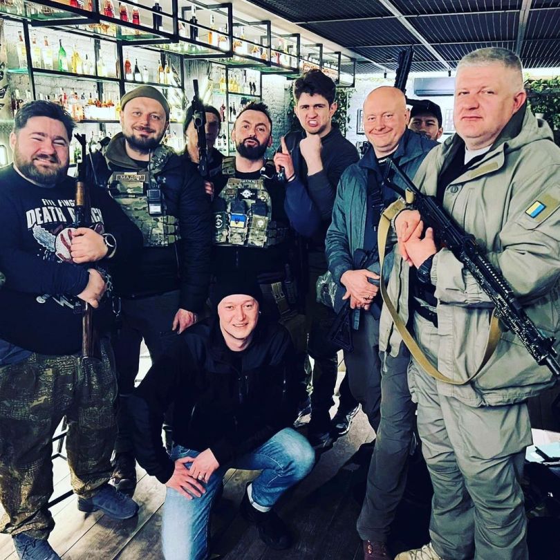 Серед українських зірок уже багато хто приєднався до територіальної оборони та ЗСУ: хореограф і танцівник Дмитро Дікусар, лідер гурту «Бумбокс» Андрій Хливнюк, блогер та ексХолостяк Микита Добринін, лідер гурту «Антитіла» Тарас Тополя, учасник «ТНМК» Олег Фагот Михайлюта, боксер Олександр Усик, гуморист Юрій Ткач, співак Сашко Положинський, ведучий Сергій Притула, режисер Ахтем Сеітаблаєв, актор Олексій Трітенко. Цей список постійно поповнюється.